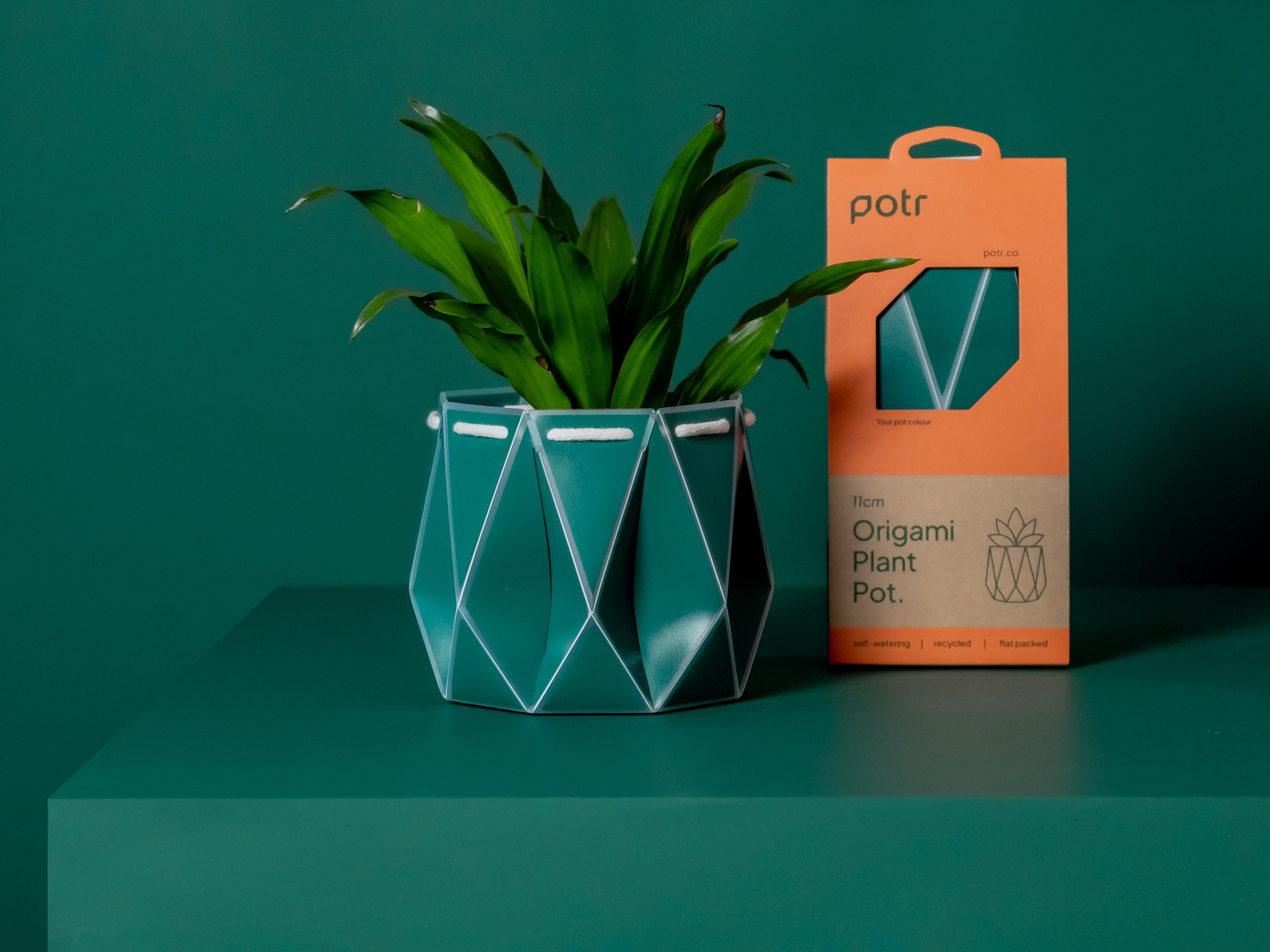 POTR Pots are delivered flat pack through your letterbox with the smallest carbon footprint possible. After popping into shape the wicking cord enables your plant to self-regulate its own water intake - no more unhappy plants!
